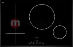 Płyta indukcyjna o szerokości 80.2 cm, z 4 polami grzejnymi o mocy całkowitej 7200 W, z 2-stopniowym wskaźnikiem opadania ciepła oraz z zabezpieczeniem przed dziećmi. Model ten posiada 17-stopniową regulację mocy oraz funkcją PowerManagement.