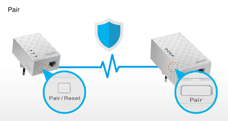 Aby utworzyć naprawdę bezpieczne połączenie oparte na instalacji elektrycznej wciśnij przyciski „Paruj” na obu adapterach. Ustanawia to bezpiecznie szyfrowane połączenie pomiędzy adapterami i uniemożliwia komuś innemu podłączenie nieautoryzowanego adaptera do Twojej instalacji (oczywiście zawsze możesz dodawać swoje własne adaptery!). Jest to idealne rozwiązanie jeśli mieszkasz gdzieś, gdzie instalacja elektryczna jest współdzielona, jak np. w przypadku mieszkania – Twoi sąsiedzi nie będą w stanie przypadkowo podłączyć się do Twojej sieci, a Twoje dane będą w pełni bezpieczne.