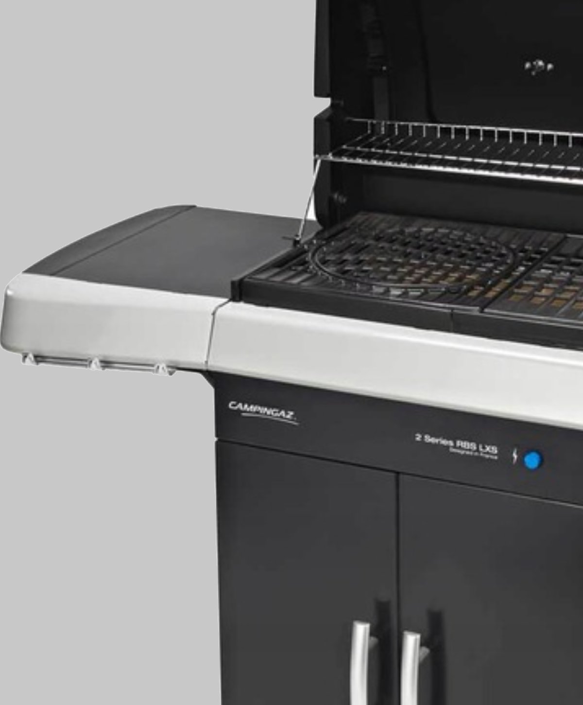 Grill gazowy Campingaz RBS LXS kolekcja 2 wykorzystuje technikę Radiant Burner System, której istotą są dwa palniki ceramiczne umieszczone na przeciwko siebie w bocznych ścianach grilla. Te dwa palniki o mocy 7,8 kW to infraredy złożone z setek ceramicznych otworów zwanych portami poprzez które wtłaczany gaz pali się tworząc podczerwień ogrzewającą piekarnik grilla. Opiekane z boków potrawy pod wpływem wysokiej temperatury smażą się tak samo z obu stron. Dzięki bocznemu położeniu palników skapujące tłuszcze i sosy nie posiadają kontaktu z rozżarzonymi palnikami.