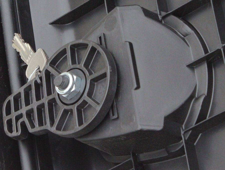 Skrzynka posiada dwa zamki na kluczyk, zapasowe kluczyki są w komplecie.