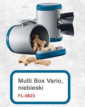 Pojemnik 2w1, w którym możesz nosić przysmaki dla pupila lub woreczki na psie kupy. Dzięki specjalnemu zaczepowi pojemnik można przymocować przy smyczy modułowej Vario, dzięki czemu nie trzeba już chować woreczków, czy przysmaków po kieszeniach!