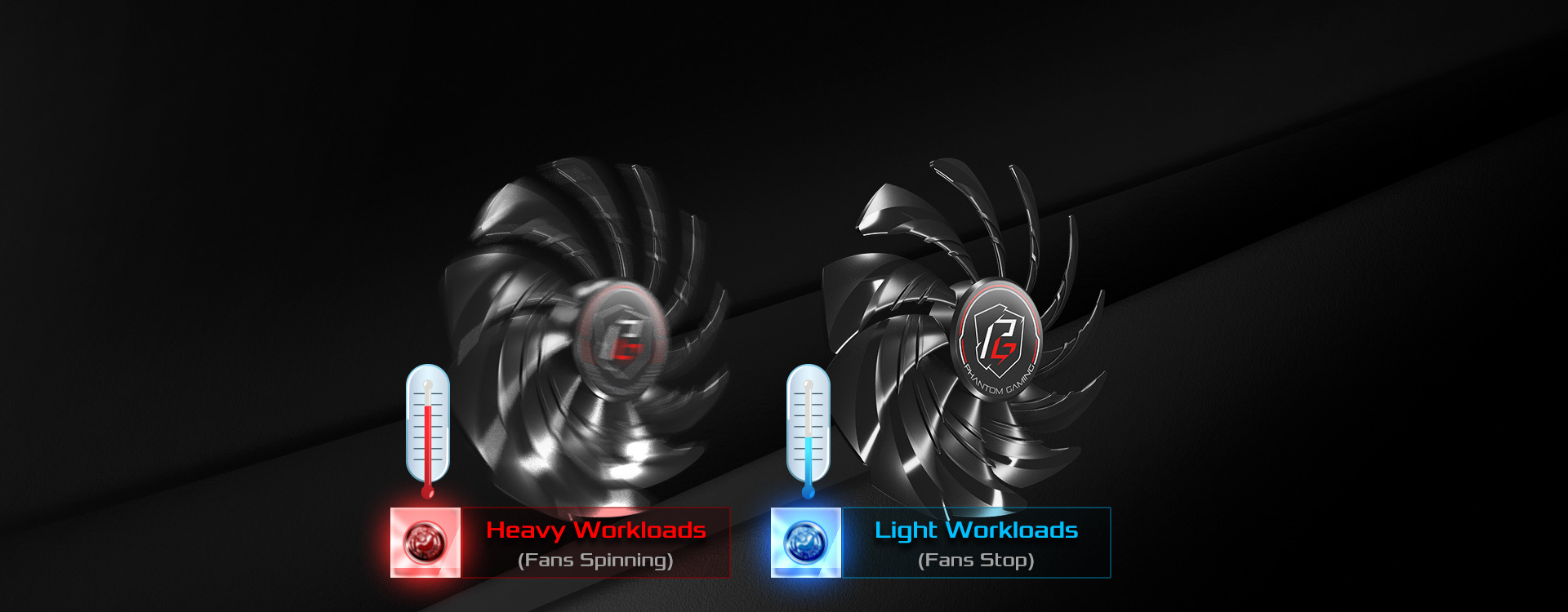 Technologia cichego chłodzenia 0dB pozwala na całkowite zatrzymanie pracy wentylatorów podczas niskiego obciążenia komputera.
