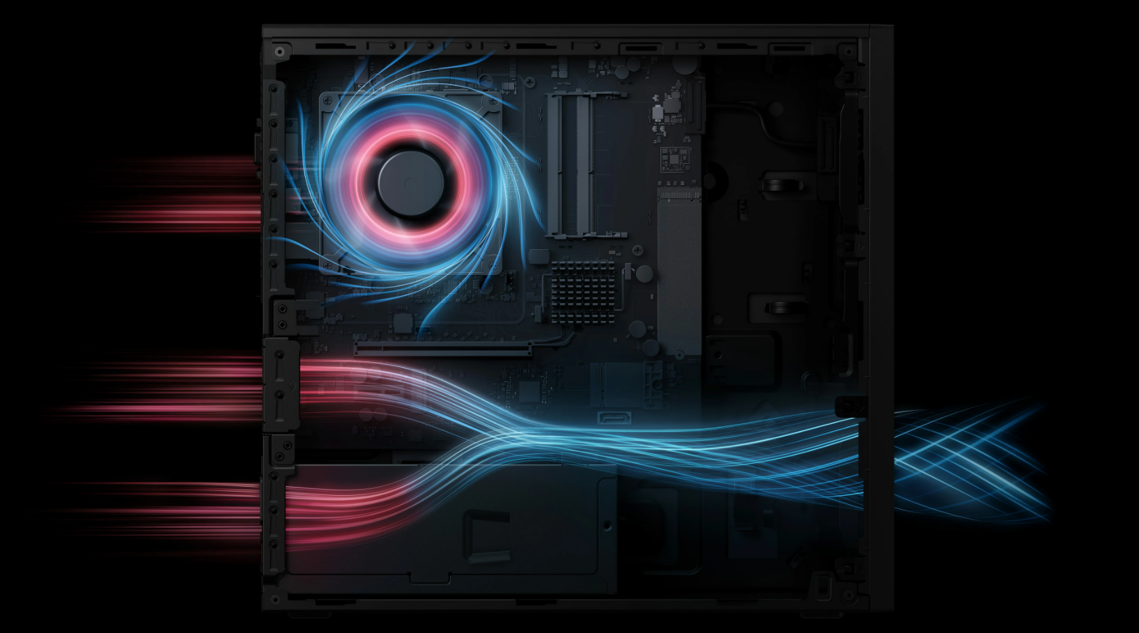 Pod dużym obciążeniem, w szczególnie wymagających zadaniach, specjalnie zaprojektowany system chłodzenia w HUAWEI MateStation S szybko odprowadza ciepło bezpośrednio z procesora do otworów wentylacyjnych. Dzięki temu nie odczujesz spadku wydajności i nie musisz martwić się o głośną pracę podzespołów.