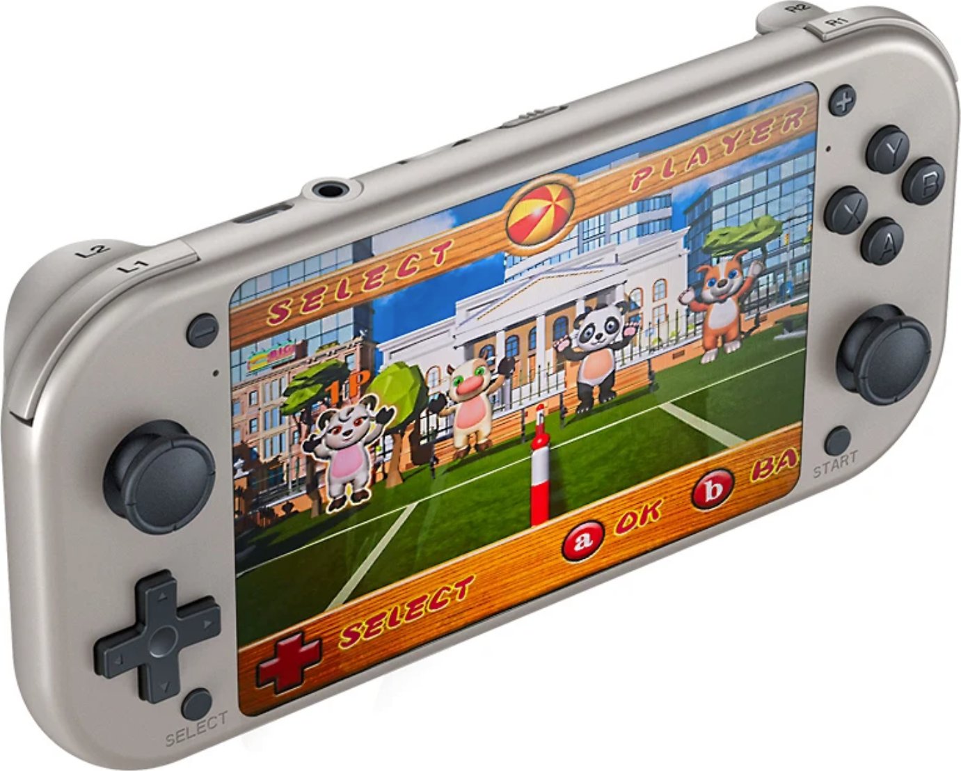 Konsola wykorzystuje system operacyjny oparty na Linuxie, który jest intuicyjny i łatwy w nawigacji. Menu główne pozwala szybko przeglądać kolekcję gier, ustawienia i ulubione. Konsola posiada wbudowane głośniki stereo, które zapewniają wysokiej jakości dźwięk, wzmacniając wrażenia z gry. Dodatkowo, możliwość podłączenia słuchawek przez złącze mini-Jack 3,5 mm pozwala na cieszenie się grą bez zakłóceń zewnętrznych.