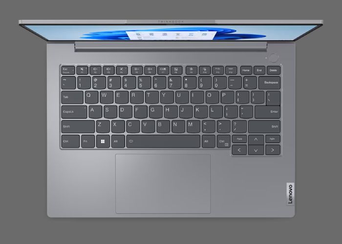 Oprócz eleganckiego wyglądu i stylu aluminiowej obudowy w kolorze Arctic Grey, laptop ThinkBook 14 Gen 6 może pochwalić się ulepszoną, ergonomicznie przeprojektowaną klawiaturą. Klawisze są większe niż w poprzednich generacjach i mają wklęsłą nasadkę zakrzywioną do palców, a ponadto są wykonane w 50% z plastiku pochodzącego z recyklingu. Rozszerzony touchpad działa płynnie i łatwo. Inteligentny klucz F9 można dostosować tak, aby otwierał dowolną często używaną aplikację — lub zachował ustawienie domyślne, które prowadzi bezpośrednio do naszej strony Usługi.