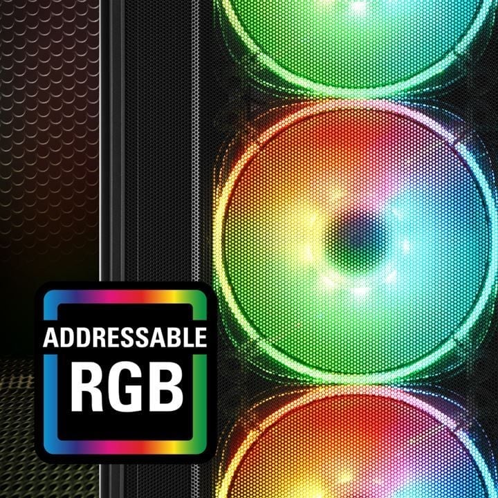 Aby TG6M RGB nie grzał się nawet podczas ciągłej pracy, budka ma wiele opcji chłodzenia. Przede wszystkim rozbudowana kratka z siatki, która zakrywa przód obudowy, zapewni optymalny przepływ powietrza. Za maskownicą znajdują się trzy adresowalne wentylatory LED RGB 120 mm, które utrzymują przepływ powietrza i nadają frontowi obudowy promienny wygląd. Panel boczny wykonany ze szkła hartowanego gwarantuje głęboki wgląd do wnętrza, służąc jako wizytówka zainstalowanego sprzętu. Jednocześnie czwarty 120-milimetrowy wentylator LED RGB z tyłu obudowy oświetla wbudowane komponenty kolorowymi tonami.