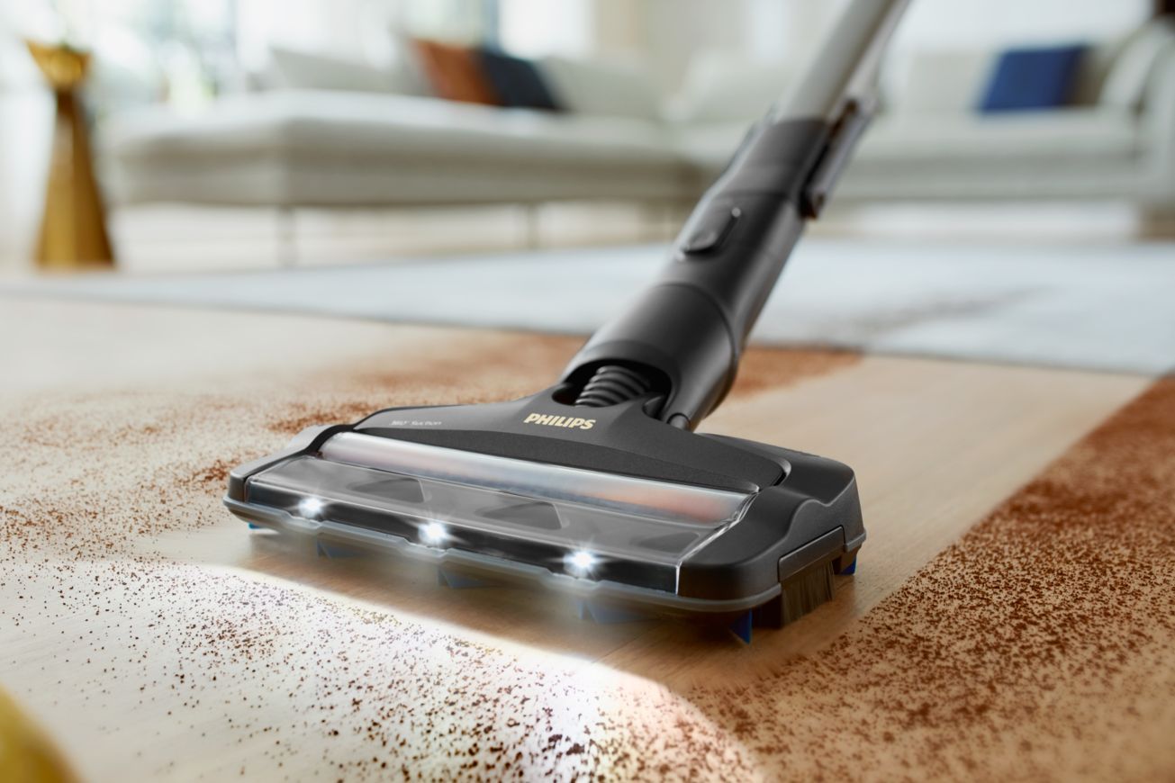 Nasadka jest wyposażona w podświetlenie LED, które oświetla podłogę podczas odkurzania i ujawnia trudne do wykrycia lub wcześniej niewidoczne zabrudzenia. Dzięki temu kurz, kłaczki kurzu, włosy i okruszki można łatwo dostrzec nawet pod meblami lub w miejscach, gdzie potrzebne jest dodatkowe światło.