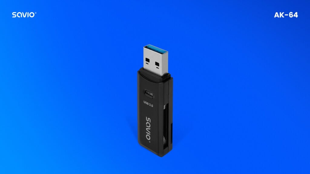 Czytnik kart SD USB 3.0 SAVIO AK-64 to wszechstronne oraz niezawodne urządzenie, które umożliwia komfortowy odczyt danych z różnego rodzaju kart pamięci. Dzięki temu kompaktowemu i wydajnemu gadżetowi, przesyłanie zdjęć, plików oraz innych informacji z kart pamięci do komputera staje się wyjątkowo szybkie i wygodne. AK-64 jest wykonany w eleganckim, czarnym kolorze i z pewnością świetnie sprawdzi się zarówno w pracy, jak również w podróży czy codziennym użytkowaniu. Mały rozmair sprawia, że możesz mieć go zawsze pod ręką w nagłych sytuacjach.