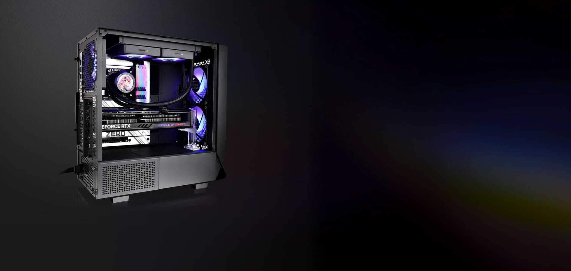 Ceres 330 TG ARGB Mid Tower Chassis to obudowa ATX, która obsługuje zarówno płyty główne ASUS, jak i MSI Hidden-Connector i jest wyposażona w dwa wentylatory chłodzące do komputera CT140 ARGB Sync zainstalowane z przodu i jeden wentylator chłodzący do komputera CT140 zainstalowany z tyłu. Jego oświetleniem RGB można sterować za pomocą oprogramowania płyt głównych firm ASUS, GIGABYTE, MSI i ASRock. Ponad 55% paneli jest perforowanych, aby zapewnić duży przepływ powietrza. Poza tym w obudowie można zainstalować maksymalnie pięć wentylatorów 140 mm lub siedem wentylatorów 120 mm, jeden grzejnik 360 mm można umieścić z przodu i maksymalnie jeden grzejnik 280 mm w górnej części obudowy, co zapewnia niezliczone opcje sprzętowe.