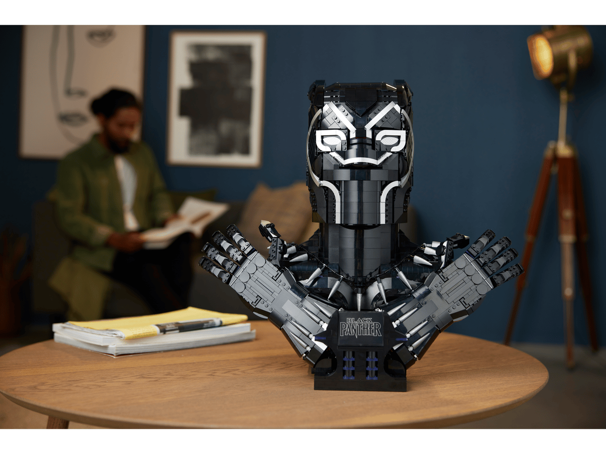 Szczegółowa replika ma głowę, popiersie i ręce Czarnej Pantery ułożone w kultowe pozdrowienie „Wakanda w moim sercu”. Obie dłonie mają ruchome palce, a same dłonie można odczepić od głównego modelu, by zestaw dało się eksponować na więcej sposobów. Solidna podstawa z płytką z logo uzupełnia tę pamiątkę na cześć legendarnego bohatera. Dzięki 2961 elementom zestaw stanowi wyzwanie i z pewnością zapewni satysfakcję z budowania.
