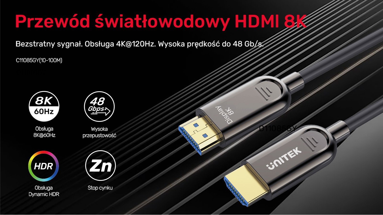 Transfer danych do 40 Gbps – kabel światłowodowy HDMI Unitek obsługuje transfer danych z prędkością do 40 Gbps, dzięki czemu nie umknie Ci już żadna klatka.