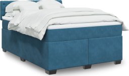 vidaXL Łóżko kontynentalne z materacem, niebieskie, 140x200cm, aksamit