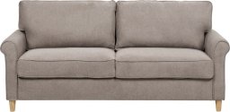 Ta klasyczna sofa inspirowana stylem retro to wspaniały dodatek do każdego tradycyjnego wnętrza. Jej drewniana rama pokryta jest wysokiej jakości materiałem w jasnobrązowym kolorze. Grube poduchy siedziskowe wyposażone są w sprężyny kieszeniowe, które sprawiają, że sofa jest niezwykle wygodna. Zamki wbudowane w poduszki oparciowe ułatwiają ich czyszczenie. Dzięki prostym liniom, klasycznym kształtom oraz zaokrąglonym podłokietnikom sprawdzi się ona również w bardziej nowoczesnych jak i minimalistycznych aranżacjach.