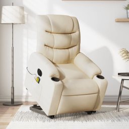 vidaXL Podnoszony fotel masujący, elektryczny, rozkładany, kremowy