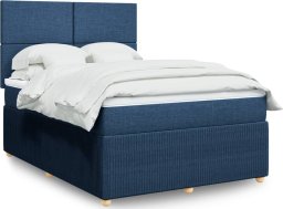 vidaXL Łóżko kontynentalne z materacem, niebieskie, tkanina 140x200 cm