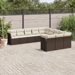 vidaXL 11-cz. zestaw mebli ogrodowych z poduszkami, brązowy, rattan PE
