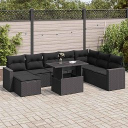 vidaXL 9-cz. zestaw wypoczynkowy do ogrodu, z poduszkami, czarny
