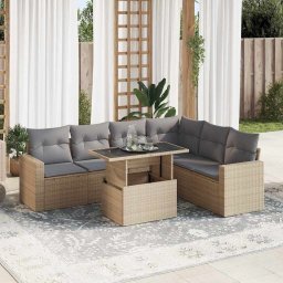 vidaXL 7-cz. zestaw wypoczynkowy do ogrodu, z poduszkami, beżowy