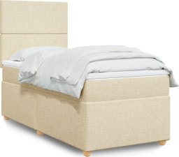 vidaXL Łóżko kontynentalne z materacem, kremowe, tkanina, 90x200 cm