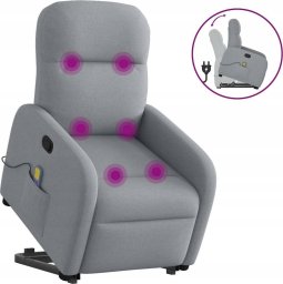 vidaXL vidaXL Podnoszony fotel masujący, rozkładany, jasnoszary, tkanina
