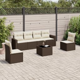 vidaXL 7-cz. zestaw wypoczynkowy do ogrodu, z poduszkami, brązowy