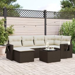 vidaXL 7-cz. zestaw wypoczynkowy do ogrodu, z poduszkami, brązowy