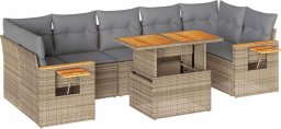 8-cz. zestaw mebli z poduszkami, beżowy, polirattan i akacja