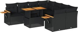 9-cz. zestaw mebli z poduszkami, czarny, polirattan i akacja
