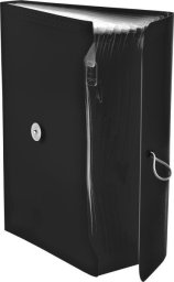 Teczka harmonijkowa PP z gumką, mieszcząca format A4. Teczka posiada 13 przegród. Wymiary teczki: 330x245x35 mm, grubość tworzywa PP: 0,50 mm. Dostępna w pięciu kolorach (niebieski, czerwony, pomarańczowy, żółty, czarny). Opakowanie: folia 1 szt.