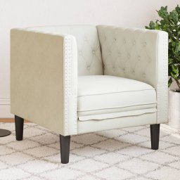 Fotel Chesterfield, kremowy, tapicerowany aksamitem