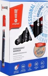 Marker permanentny MemoBe. Doskonały do pisania po gładkich powierzchniach. Trwały tusz na bazie alkoholu odporny na ścieranie. Okrągła końcówka o grubości linii pisania 2-3 mm. Możliwość wymiany tuszu. Skuwka ze specjalną końcówką ułatwiającą rozcinanie taśmy, otwieranie kartonów i uzupełnianie tuszu. Czyste i komfortowe ponowne napełnianie. Dostępne 4 kolory: czarny, czerwony, niebieski.