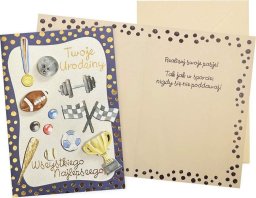 Kartka B6 z ozdobnej serii Dream Cards na urodziny - nieduża, ale robi wrażenie dzięki atrakcyjnej kolorystyce i ciekawym zdobieniom. To idealny wybór łączący przyjazną cenę z jakością. Cechy szczególne: wielkość: B6, 16.6 x 11.7 cm po złożeniu, koperta: w zestawie, kolorowa, zdobienia: kolorowe, różnorodne, bogate (w zależności od wzoru: przyklejane dekoracje, elementy biżuteryjne, odstawniki, metaliczne folie, tłoczenia itp.), okazja: urodziny