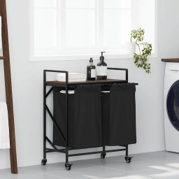 Kosz na pranie vidaXL Kosz na pranie 2 przegrody z kółkami, brązowy dąb