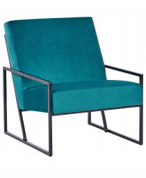 Obicie fotela wykonane jest z miękkiej welurowej tkaniny w pięknym odcieniu lazurowym, co nadaje mu niepowtarzalnego uroku. Solidna czarna metalowa rama nie tylko zapewnia stabilność, ale również przyciąga wzrok swoim nowoczesnym wyglądem. Fotel jest częściowo zmontowany, co oznacza, że jest gotowy do użycia zaraz po zakupie.