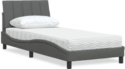 vidaXL Łóżko z materacem, ciemnoszare, 90x190 cm, obite tkaniną
