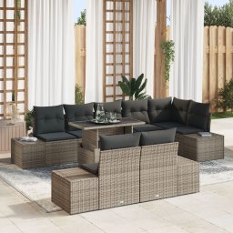vidaXL Zestaw Sofy Ogrodowej Zestaw 9 Szary Rattan Stoły ogrodowe