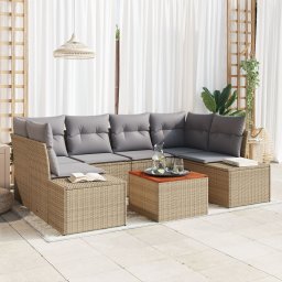 vidaXL 7-elementowy zestaw sofy ogrodowej z poduszkami w kolorze beżowym z rattanu polietylenowego i akacjowego