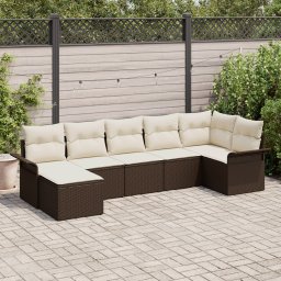 vidaXL Zestaw Sofy Ogrodowej 7 Elementowy z Poduszkami Brązowy Poli Rattan