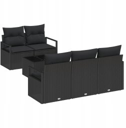 Zestaw kanap ogrodowych vidaXL 6-częściowy z poduszkami Czarny Polirattan, Sofa ogrodowa 2-osobowa vidaXL z poduszkami Czarna Polirattan