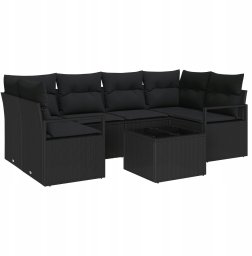Zestaw 7-częściowy sof ogrodowych vidaXL z poduszkami Czarny Polirattan, Zestaw 2-osobowy sof ogrodowych vidaXL z poduszkami Czarny Polirattan