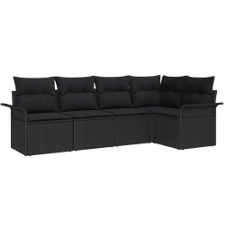 vidaXL Zestaw 5-częściowy sof ogrodowych z poduszkami Czarny Polirattan