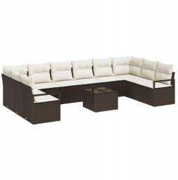Zestaw ogrodowy vidaXL 10 elementów z poduszkami szary polirattan, Sofa ogrodowa vidaXL 2-osobowa z poduszkami brązowa polirattan