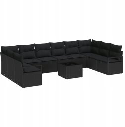 Zestaw 11-elementowy sofy ogrodowej z poduszkami beżowy polirattan, Sofa ogrodowa 2-osobowa z poduszkami czarna polirattan