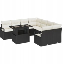 Zestaw 9 elementów sof ogrodowych z poduszkami Czarny polirattan, Dwuosobowa sofa ogrodowa z poduszkami Czarny polirattan