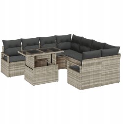 Zestaw sofy ogrodowej vidaXL to doskonałe połączenie elegancji i funkcjonalności, które idealnie wpasowuje się w nowoczesne przestrzenie na świeżym powietrzu. Składający się z 9 elementów, w tym dwuosobowej sofy z szarymi poduszkami, zestaw ten został zaprojektowany z myślą o relaksie i przyjemnym spędzaniu czasu na zewnątrz. Jasnoszary i czarny design sprawia, że meble te harmonijnie komponują się z różnorodnymi aranżacjami ogrodowymi.
