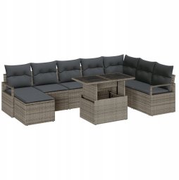 Zestaw mebli ogrodowych vidaXL składa się z 9 elementów, w tym 2-osobowej sofy, co czyni go doskonałym wyborem do relaksu na świeżym powietrzu. Jego nowoczesny, szary design harmonijnie wpasowuje się w różnorodne przestrzenie zewnętrzne, takie jak patio, balkony czy ogrody. Połączenie stylu i funkcjonalności sprawia, że jest to idealne rozwiązanie na spotkania z przyjaciółmi oraz chwile wypoczynku.