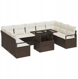 vidaXL 10-elementowy zestaw sofy ogrodowej z poduszkami brązowy polirattan, vidaXL 2-osobowa sofa ogrodowa z poduszkami brązowy polirattan