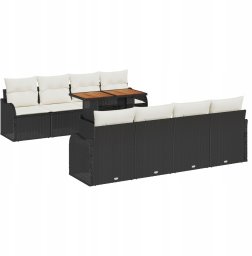 Zestaw sofy ogrodowej vidaXL w 9 częściach z poduszkami Czarny Polirattan Akacja, Sofa ogrodowa vidaXL dla 2 osób z poduszkami Czarny Polirattan