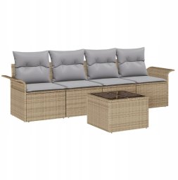 Zestaw sof ogrodowych vidaXL to doskonałe rozwiązanie dla tych, którzy pragną połączyć komfort z elegancją w swojej przestrzeni na świeżym powietrzu. Składający się z pięciu elementów, w tym miękkich poduszek, zestaw ten oferuje wygodne miejsce do relaksu dla czterech osób. Beżowy polirattan nadaje mu stylowy wygląd, który idealnie wkomponuje się w każdą aranżację ogrodu lub balkonu.
