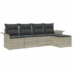 Zestaw sof ogrodowych vidaXL 5-częściowy z poduszkami jasnoszary polirattan, Sofa ogrodowa vidaXL dla 2 osób z miejscem na przechowywanie i poduszkami jasnoszary polirattan